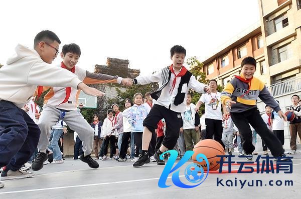 △2023年10月31日,江苏扬州,广陵小学“课间相等钟”,同学们正在操场上“抢皮球”。