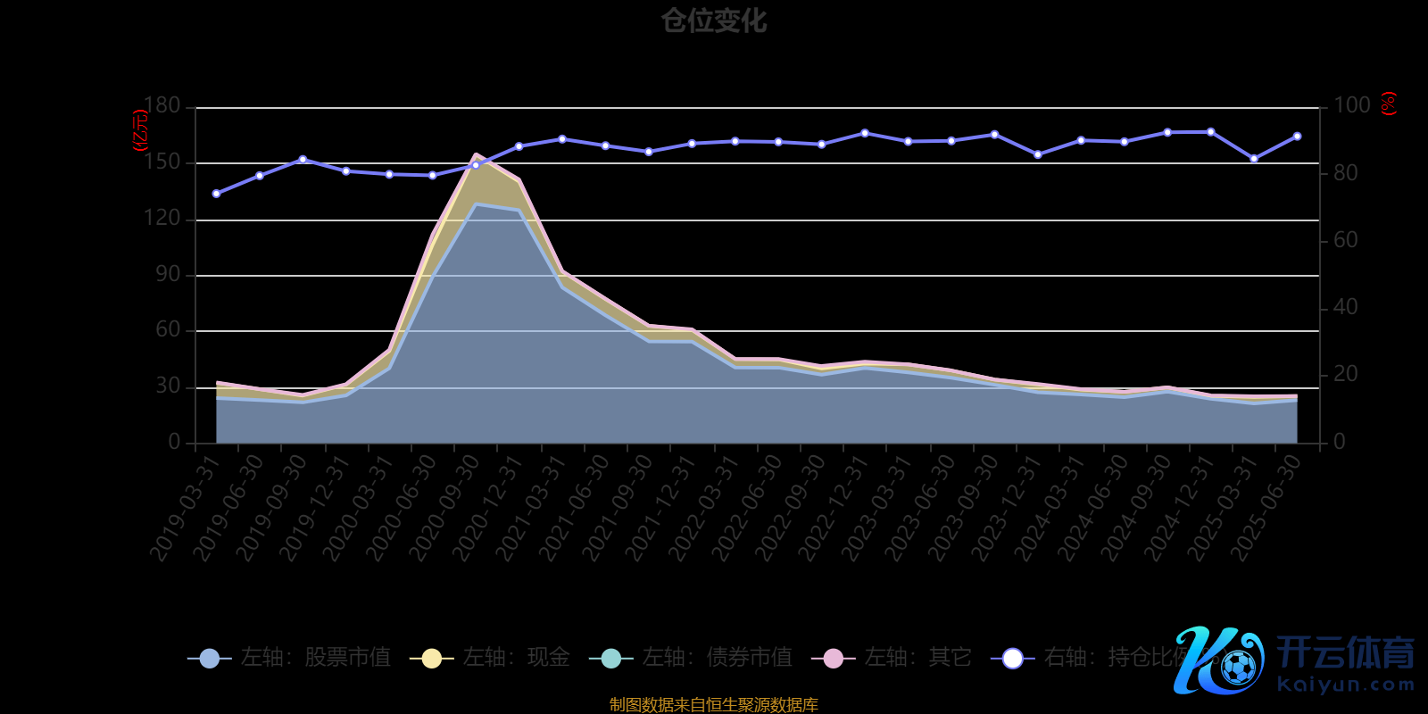 据依期阐扬数据统计,近三年平均股票仓位为89.96%,同类平均为86.09%。2024年末基金达到92.63%的最高仓位,2019年一季度末最低,为74.25%。
